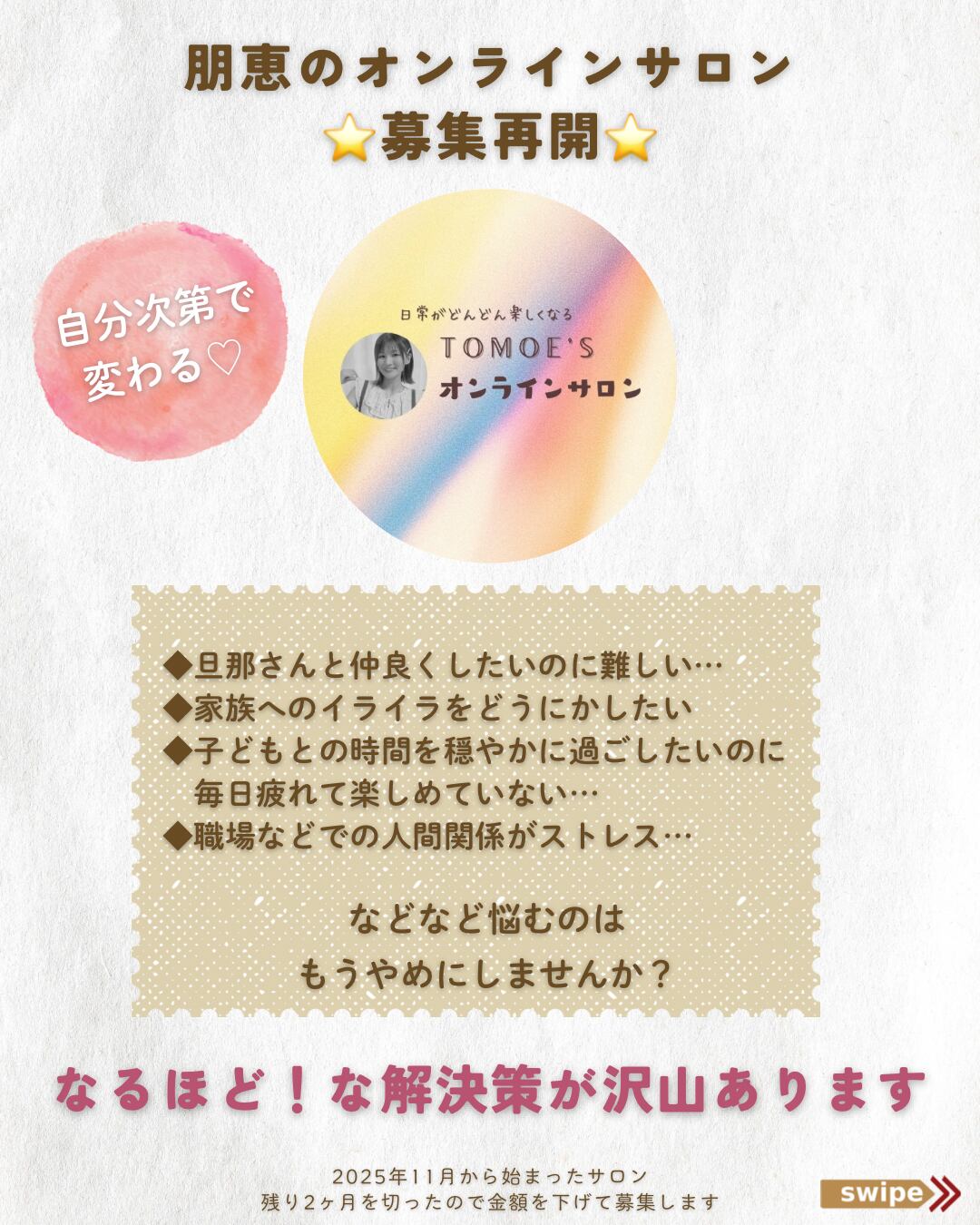 ↑これは全部過去の私です。ひとつでも当てはまる人はぜひ朋恵のオンラインサロンで一緒に変えていきましょう(^^)