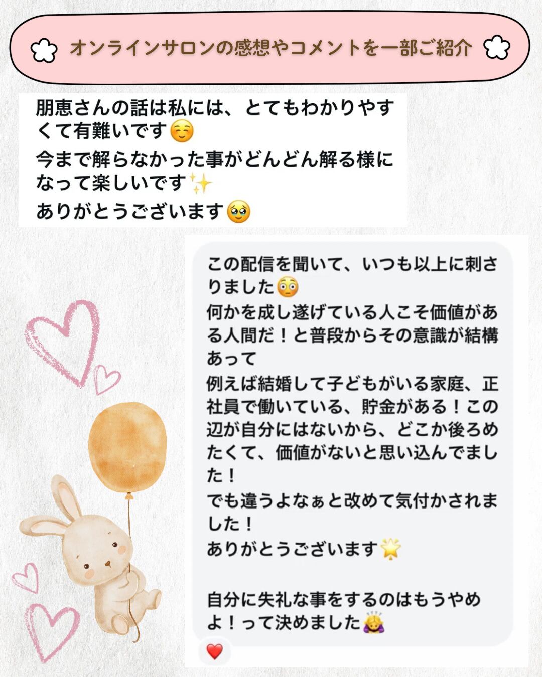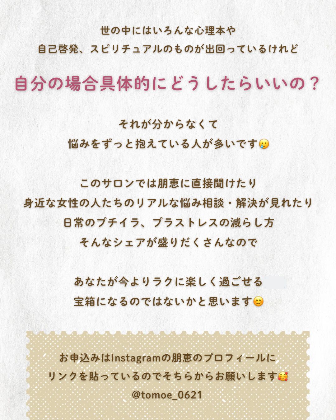 ・DMなど朋恵とのやりとりは、コミュニティ内でシェアさせて頂く場合があります。